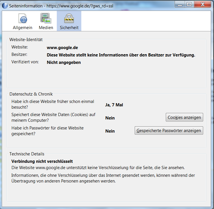 Hier mal ein Screenshot vom Waterfox . Es sieht so aus , als hätte erkeine Zertifikate.[attachment=0]Google.png[/attachment]