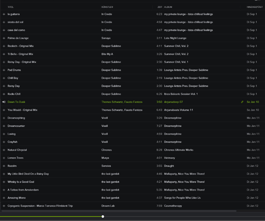 gehört bzw. auf (DAT/Analog-)kasetten hatte, hab ich (diesmal "für immer") auf Spotify in playlisten "gespeichert":