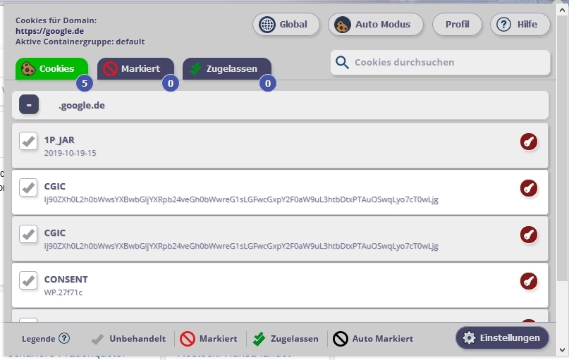 Bei Flag Cookies muss in allen Positionen der rote Schlüssel gesetzte sein - nach den Einstellungen der Add-ons hat man dann die alte Bildersuche standardmäßig...