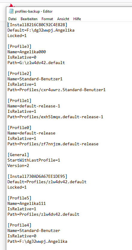 So sieht es aus, weil zuviele Profile dort sind. Ein Backup habe ich gemacht und gespeichert.