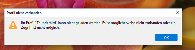thunderbird.exe -p und der Auswahl des neuen Profils kommt dann wieder die Fehlermeldung.