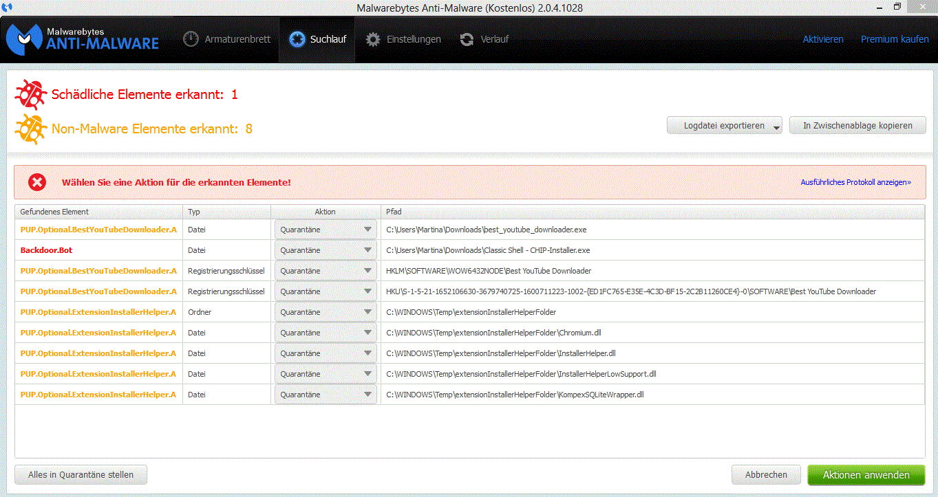 Zitat von BoersenfegerFühre Malwarebytes und AdwCleaner nochmal durch und lasse beide auch bereinigen.