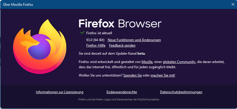 Warum nicht die Release Version vom Firefox, statt einer Beta