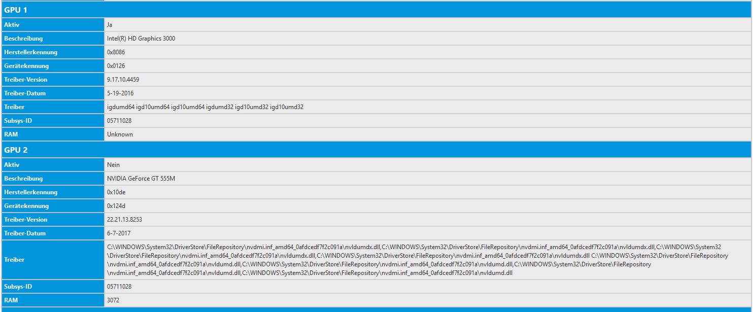 ich verwende ein DELL XPS 17 Notebook, das Teil ist zwar schon etwas älter läuft aber tadellos und in Sachen Performanz bin ich zufrieden. Nun ist mir aber aufgefallen, dass der FF anscheinend anstatt der NVIDIA-Karte die eingebaute INTEL-Karte verwendet. Zumindest sagt about:support dies aus - siehe angehängten Screenshot: