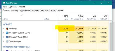Welche Komponente das ist kann man im Taskmanager oder im perfmon.exe sehr gut sehen - leider ist es bei mir immer der FF. Der zieht in der Regel 15 - 30%