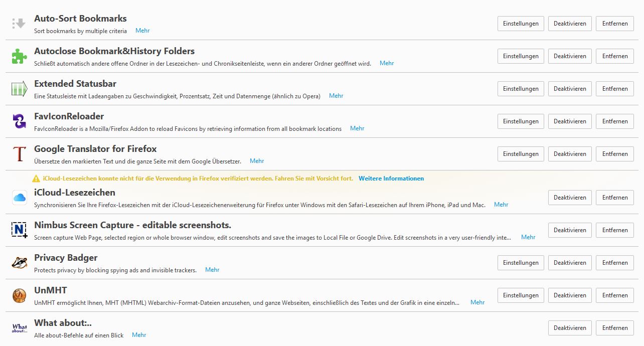 Auch meine Anzahl von Add-On ist überschaubar wie das anghängte Bildchen zeigt.