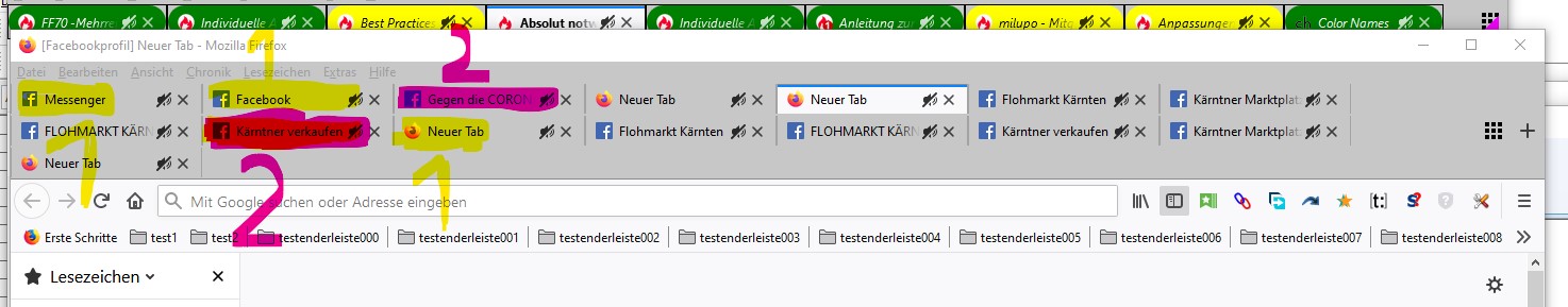 BrokenHeart Danke für Deine Antwort. Ich möchte es einfach mal austesten, um zu sehen, wie es für mich aussieht - ändern kann ich es dann immer noch. Die ersten beiden Tabs (Messenger bzw. Facebook) von meinem Bild bleiben (übrigens) immer die Gleichen - in diesem Profil.