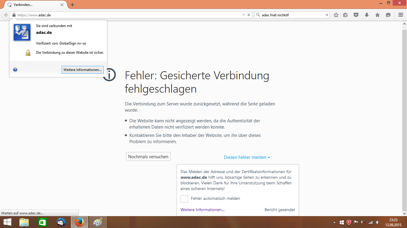 Firefox öffnet bei mir seit einiger Zeit die ADAC-Homepage Seite http://www.adac.de nicht mehr.