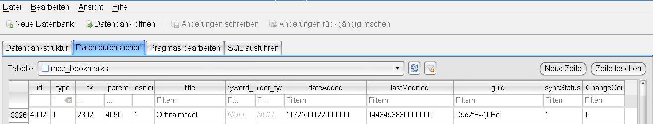 Ich habe dort mal reingeschaut. Ich finde dort den Namen des Lesezeichens z.B. "Orbitalmodell" aber erstaunlicherweise finde ich in diesem Datensatz weder die zugehörige Internetadresse noch die IP-Adresse.