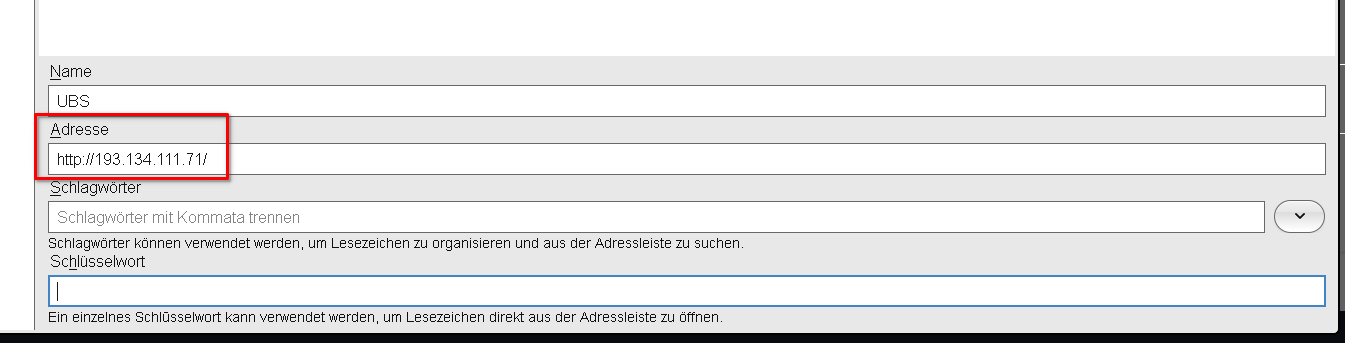 Oder anders gefragt: Bestehen die Lesezeichen aus dem Namen (z.B. https://www.ubs.com/ch/de.html) oder aus der Adresse in Zahlenform (z.B. 193.134.111.71) ?