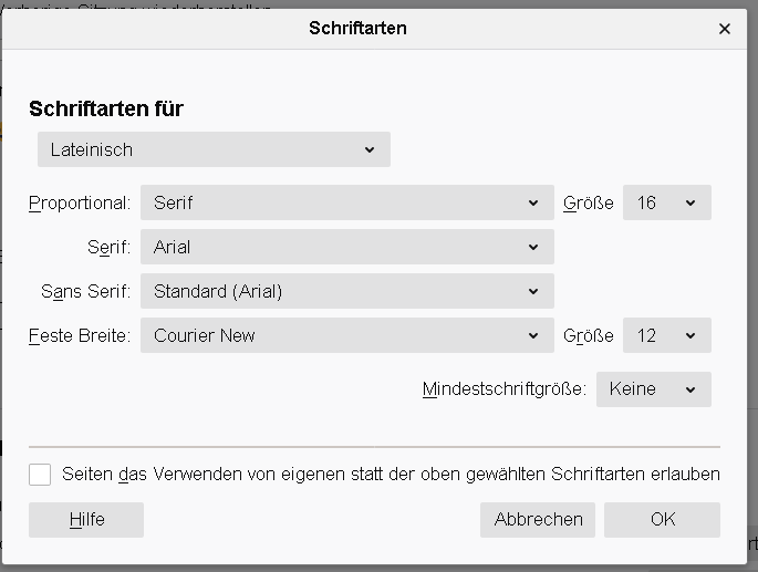 Die Option in den Firefox-Einstellungen ist eigentlich als entweder oder gedacht und nicht als sowohl als auch, das heißt, entweder werden lokale Schriftarten genutzt oder die Schriftarten von Internetseiten.