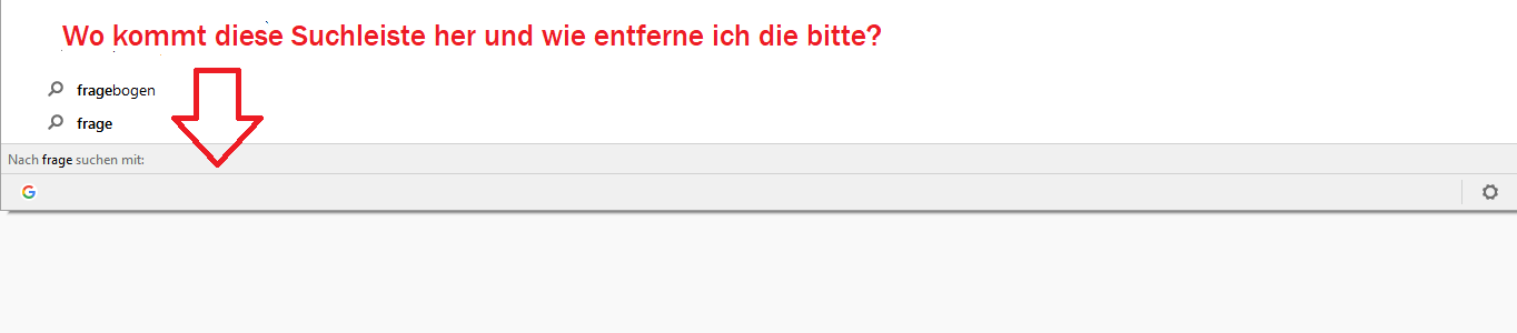 Ich weiß nicht mehr wann und wo das war, plötzlich war sie da. :-?? Wenn ich FF ohne Add ons starte ist sie auch da. Ich fürchte fast, dass die Ursache im System zu suchen ist aber wie? :-??? Die Leiste (Suche in:) erscheint, wenn ich einen neuen Tab öffne und in der FF Adressleiste einen Suchbefehl eingegeben habe. Sie zeigt die Suchmaschinen an, die im FF Menü unter Suche zur Auswahl stehen.
