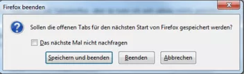 Probiere bitte 'mal,den Fx mit mehreren offenen Tabs korrekt zu beenden.