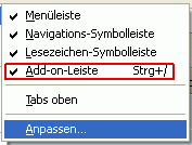 Schau nach,ob unter "Ansicht->Symbolleisten die Add-on-Leiste aktiviert ist.