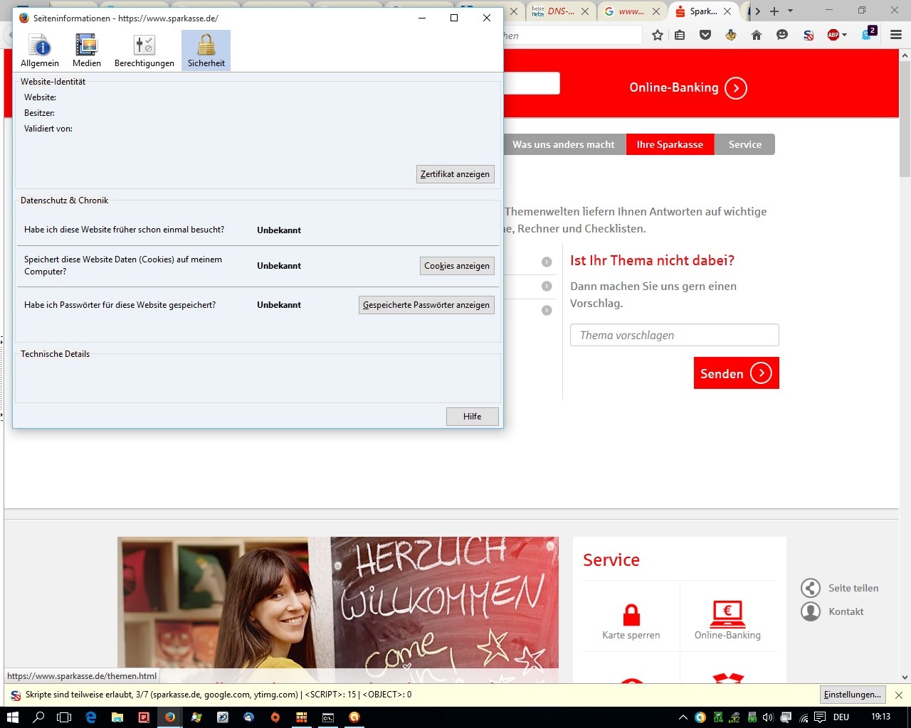 ich habe gerade festgestellt das beim kicken auf das Schloss bei HTTPS unter Informationen/sicherheit keine Infos zum Zertifikat angezeigt werden. Siehe Screenshot. Könnt ihr das bestätigen?