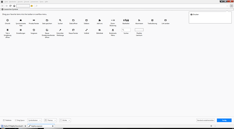 ist das eigentlich normal jedesmal wenn ich den DownloadButton über das Anpassfenster verschwieben will, verschwindet das Icon ?Rechtklick -> Anpassen und der DL Button ist weg, ja wie soll man dann verschieben können ?