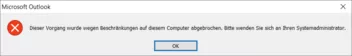 auch dort hab ich nichts gefunden, zusätzlich noch ein paar Sicherheitsbeschränkungen testhalber ausgeschaltet, Virenschutz abgeschaltet. Bringt alles nix. Auffällig ist auch noch, dass die Fehlermeldung den Zusatz enthält, man solle sich an den Systemadministrator wenden. Das deutet ja auch eher auf ein grundlegendes Systemproblem hin und weniger auf Einstellungen im Outlook selbst. Oder sehe ich das nicht richtig?