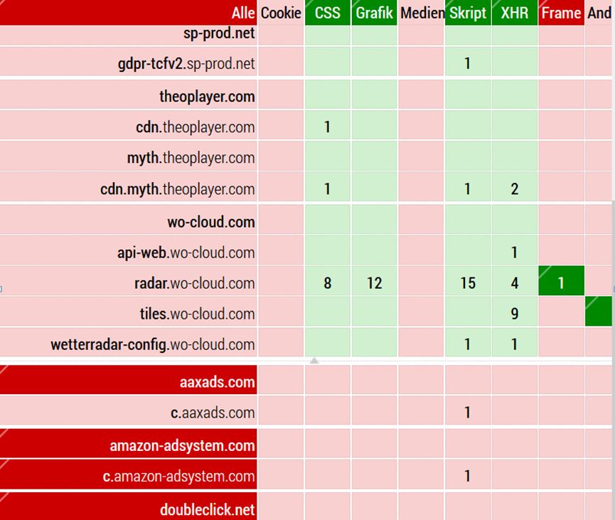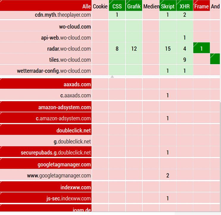 Wie gesagt, auch wenn ich den Ein-/Ausschalter von uMatrix betätige und alles grün wird, funktioniert die Anzeige des Wetterradars leider auch nicht.