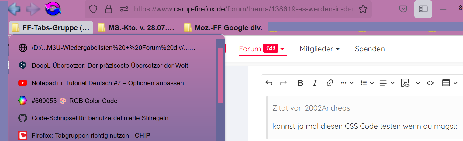 habe ich es ausprobiert. `In FF 133 hat sich evtl. vieles geändert. Wenn du aber auch FF 133 hast, dann stimmt bei meinem PC etwas nicht. Das Suchsymbol ist jetzt neben der Adressleiste aber funktionslos, weil es nicht reagiert.