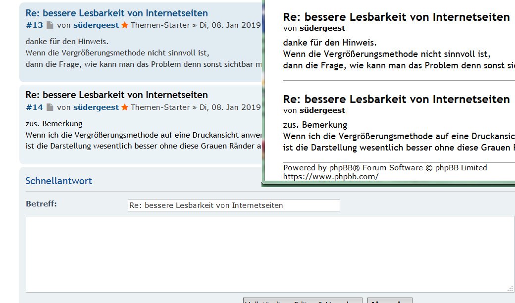 Es ist die Möglichkeit auf "Druckansicht" zu schalten.