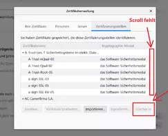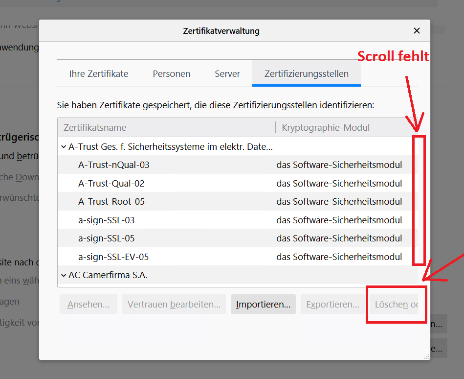 ich habe FF 68.0.2 ESR und Zertifikatverwaltung Panel sieht so aus, wie kann ich korrigieren?