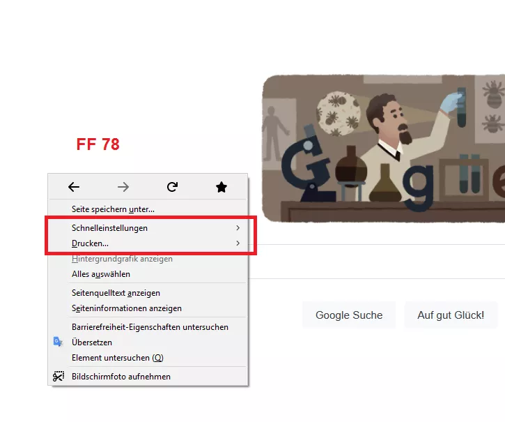 Wenn ich auf Page rechte Maus klicke, kommen diese Funktionen für 91 Version nicht aber für 78 Version sind da: