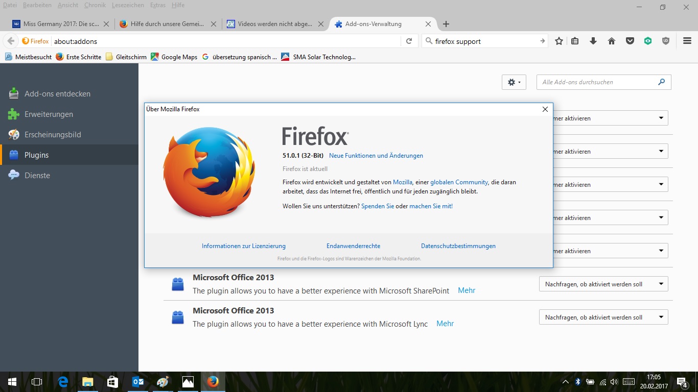 dieselbe Plugins sind bei mir auch installiert, und noch ein paar dazu (Adobe Acrobat und Microsoft office) -