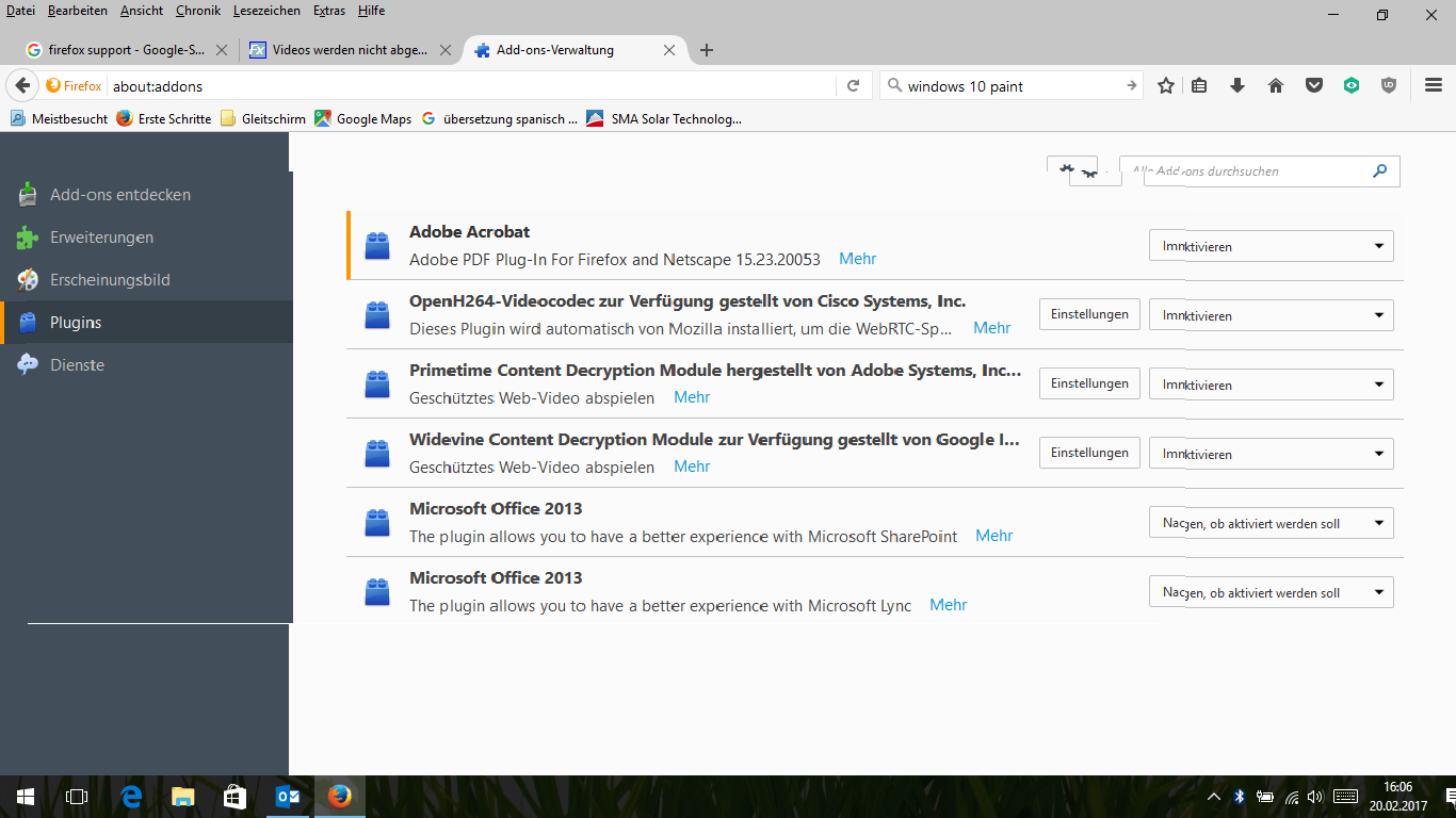 Das mit den plugins habe ich "ergooglet". Suchbegriff: "web.de Videos werden nicht abgespielt". Dabei kommt man auf eine Antwort, die sinngemäß lautet, dass man bestimmte plug ins freischalten muss; es wird aber nicht gesagt um welche plugins es sich handelt.