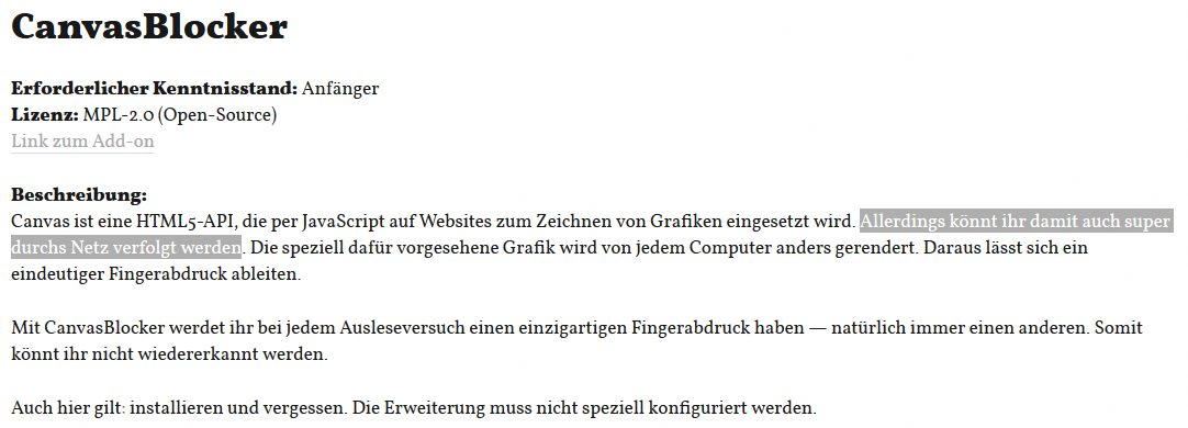 Meine Frage war, wie kann man HTML5 Canvas blockieren, was aber deiner Meinung nach gar nicht existiert.