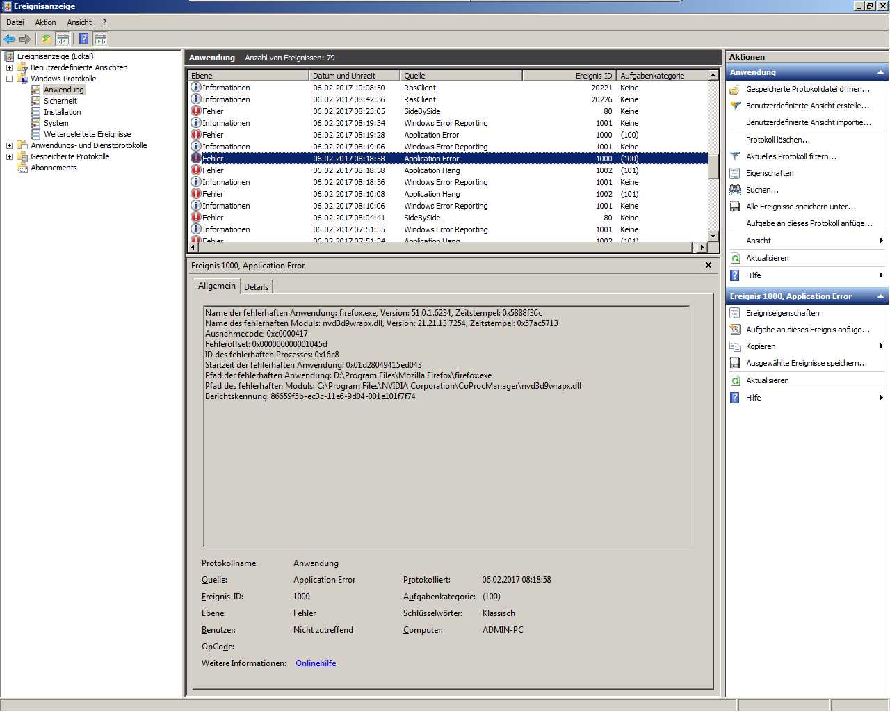 wie gesagt.... entferne Kasperksy (testweise)... dieser war in jüngster Zeit immer wieder Verursacher von Speicherproblemen etc. Speziell wenn Facebook und Firefox beteiligt waren.
