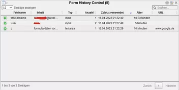 Sören Hentzschel Ich gebe zu, dass ich mir bei der Erweiterung nicht alles genaustens durchgelesen habe Mir war es nur wichtig zu sehen ob meine Formulardaten gespeichert sind. Das heißt also das was die mir anzeigt ist nicht das was Firefox tatsächlich gespeichert hat Aber gibt es die Möglichkeit zu sehen, was Firefox gespeichert hat Und das die Erweiterung tatsächlich alles speichert was ich irgendwo eingegeben habe, habe ich gemerkt und gesehen.