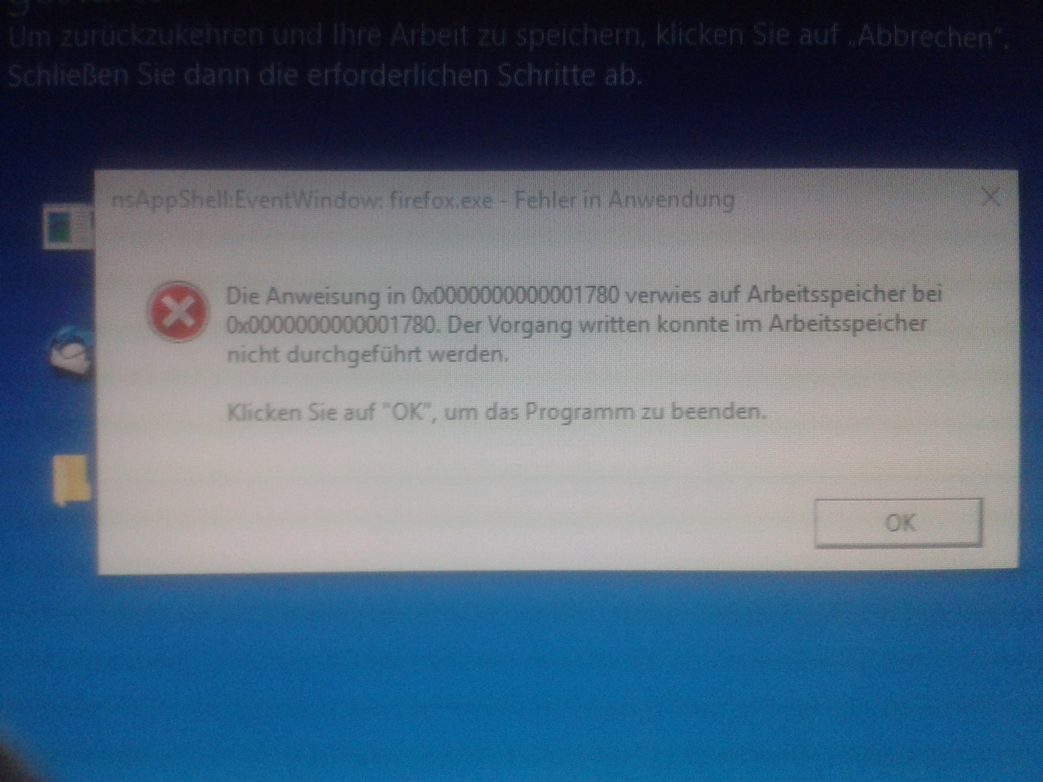 [attachment=2]20170603_014838.jpg[/attachment]So in etwa sehen die Fehlermeldungen aus, wenn ich den PC neu starten muss.