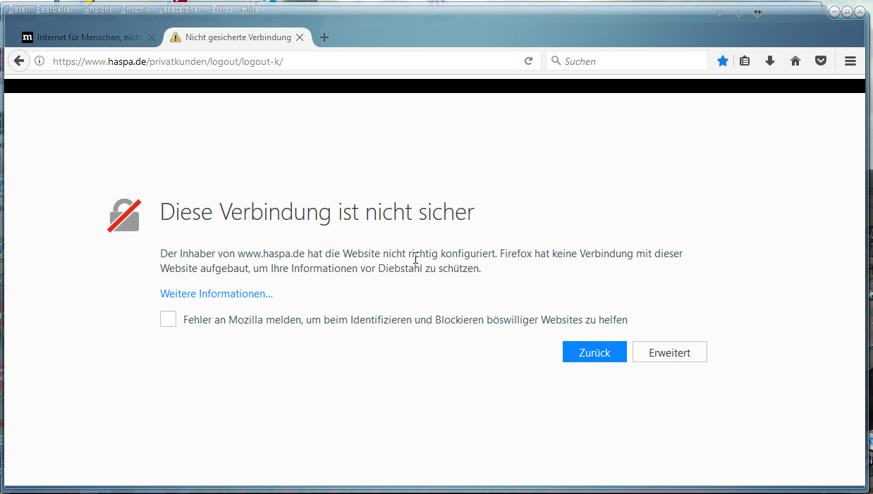 Mit Chrome, MS Edge, Vivaldi oder dem IE gibt es keine Probleme. Nur der FF weigert sich standhaft.