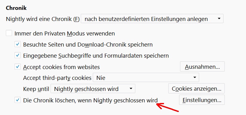 [attachment=1]Chronik löschen beim schließen.jpg[/attachment] bin und dann auf "Einstellungen" klicke, um