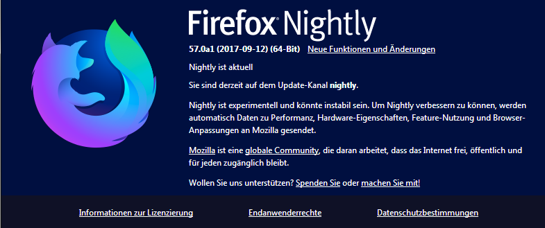 Screenshot ist von Nightly