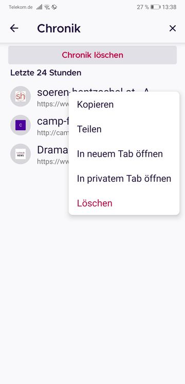 Im Firefox Android könnte man in der chronik gezielt Seiten löschen, oder die ganze chronik,.