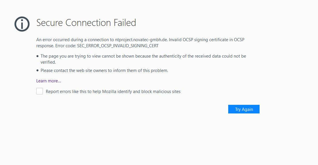 Nun haben wir das Problem, dass nur im Firefox die Seite sich per HTTPS nicht mehr öffnen lässt.
