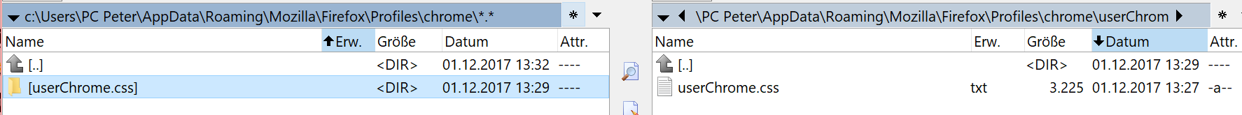 "Du hast dir im Profilordner vom Firefox einen neuen Ordner mit dem Namen: chrome erstellt?