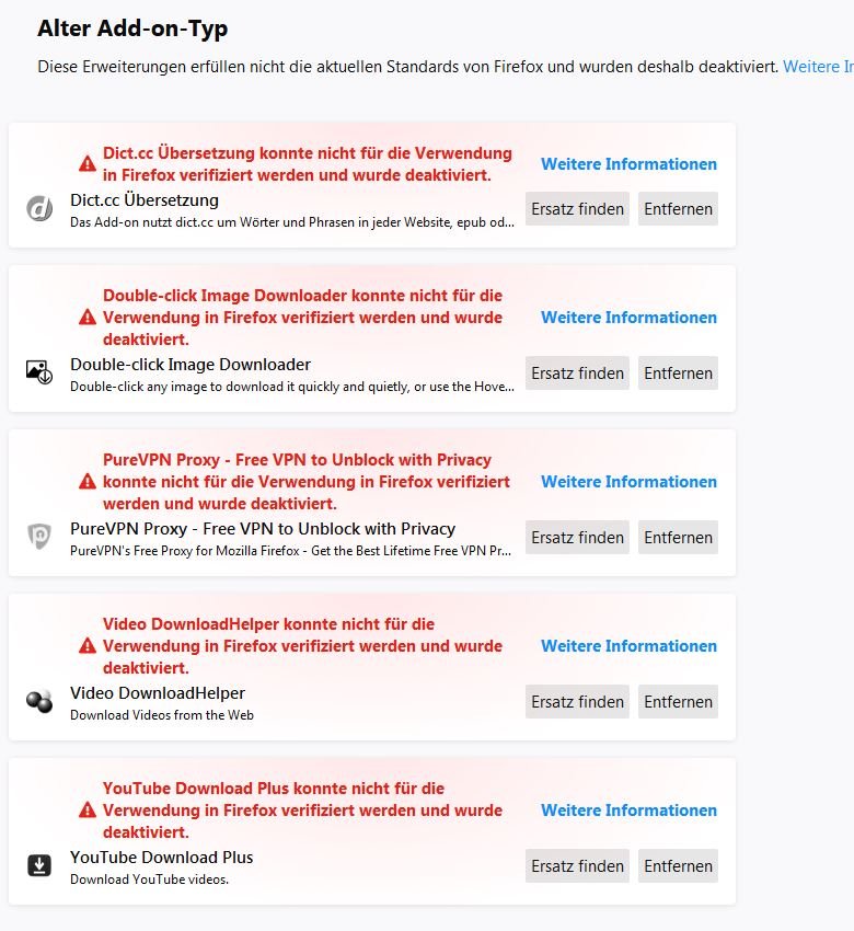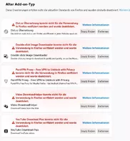 Der FireFox hat eigenmöchtig alle Add On's rausgeschmissen und als nicht verifiziert gemeldet.