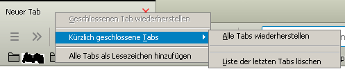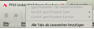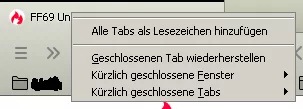 Alles anzeigen/* Tabkontextmenü Reihenfolge ändern*/ #context_undoCloseTab{ -moz-box-ordinal-group:0!important} #tabContextMenu > menuseparator:nth-child(11){ display:none!important} /*#tabHistoryUndoWindowMenu3{ -moz-box-ordinal-group:11!important}*/ #tabContextUndoList{ -moz-box-ordinal-group:0!important} #tabContextMenu > menuseparator:nth-child(19){ -moz-box-ordinal-group:8!important} #bookmark-all{ -moz-box-ordinal-group:9!important}Ich hätte gern die 2. Trennlinie nach dem ersten Eintrag, aber nur mit Änderung der Nummern ist da für meine Fähigkeiten Ende Gelände. Vielleicht hat jemand ne zündende Idee. (Muss aber nicht. ;-))