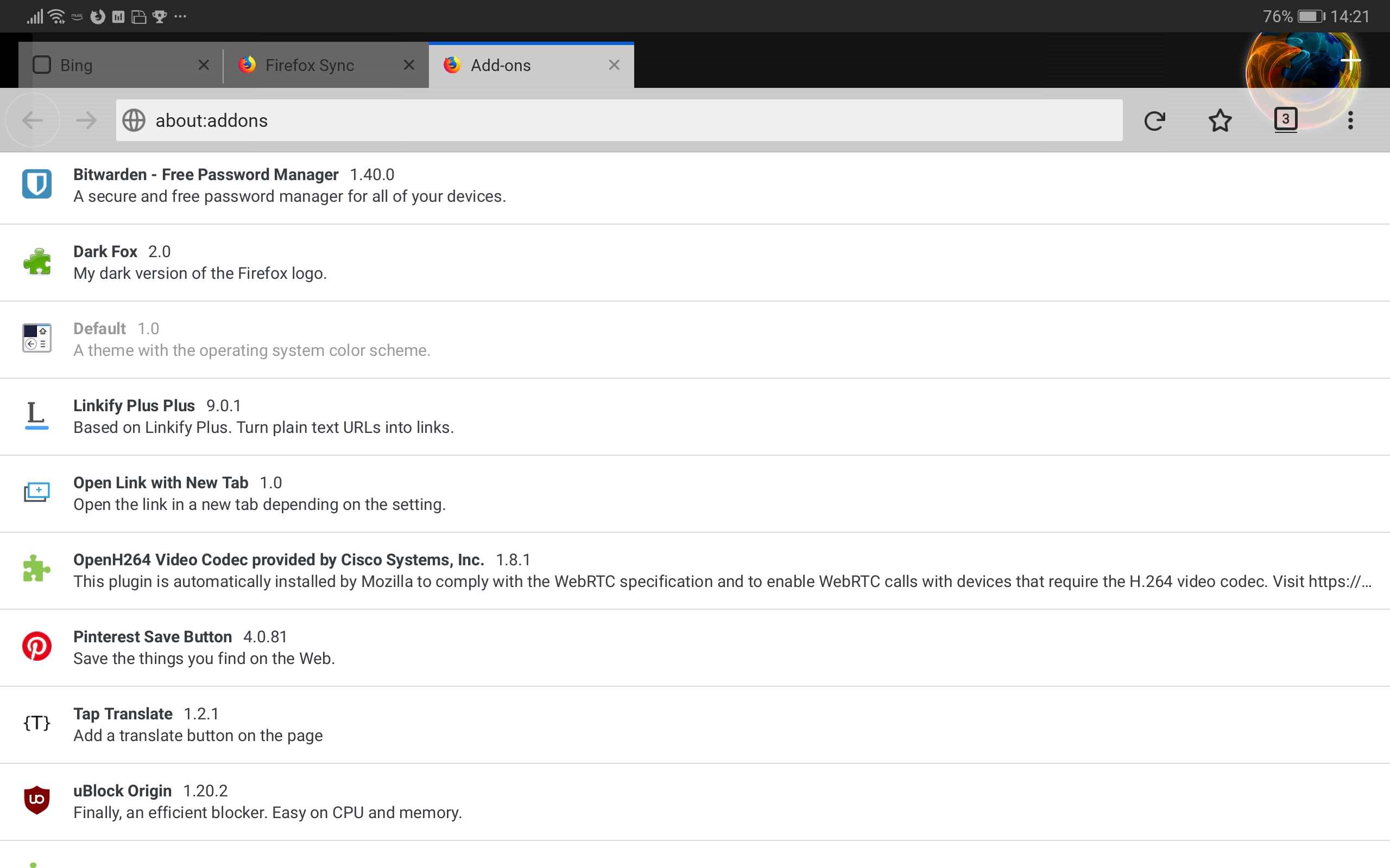 OK ich gebe nicht auf, und benutze den Fenix auf meinem Huawei Mediapad M5 10.8. Der Fenix synchronisiert ja auch automatisch ? - im Gegensatz zum Firefox - was aber offenbar Huawei anzulasten ist und nicht Mozilla, denn auf meinem alten Samsung Galaxy Tab S klappt es ja auch.