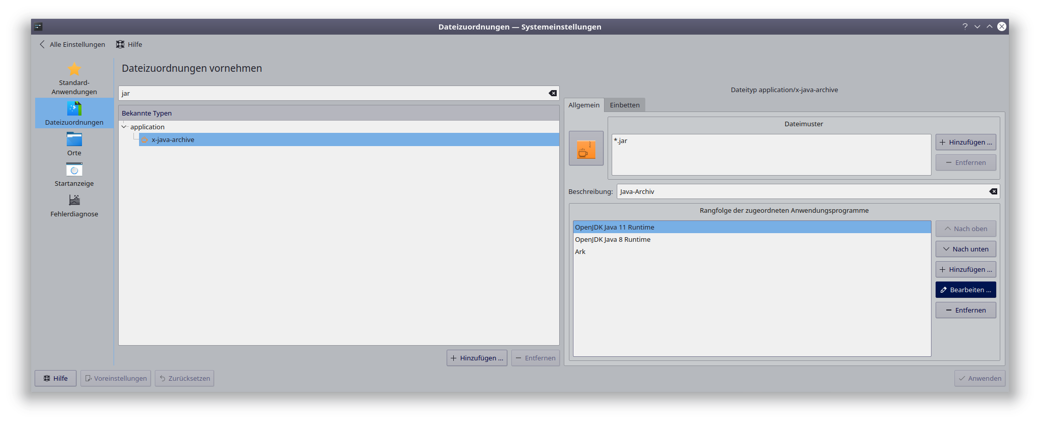 Codeapplication/x-jar=openjdk-11-java.desktop;openjdk-8-java.desktop; application/java-archive=openjdk-11-java.desktop;openjdk-8-java.desktop; application/x-java-archive=org.kde.ark.desktop;openjdk-11-java.desktop;openjdk-8-java.desktop;Nun in der Firefox-URL-Leiste /meinVerzeichnis/josm.desktop: Öffnen mit KATE oder Datei speichern. Leider kein "Ausführen.