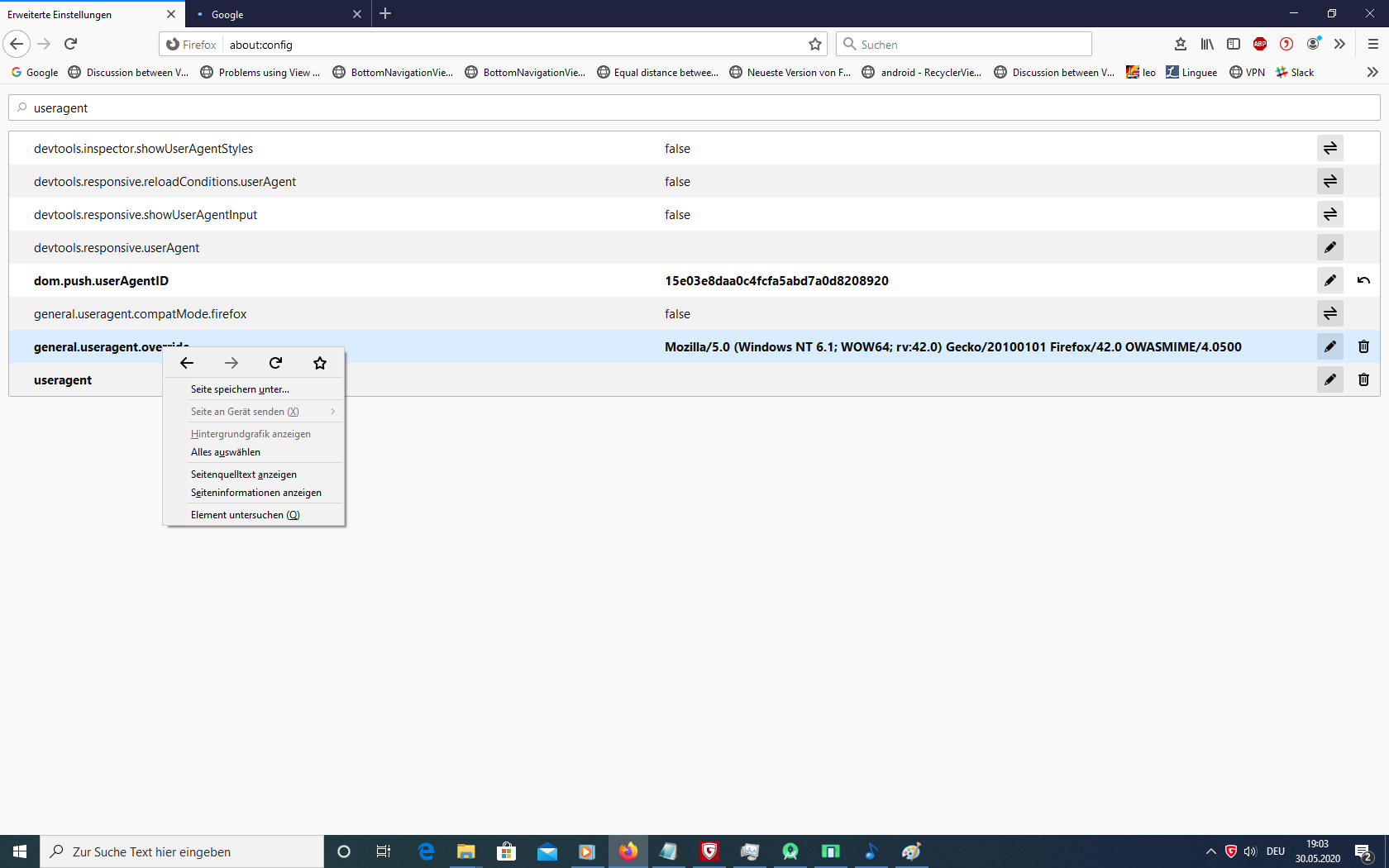 ich habe das jetzt so gemacht und mir wird jetzt dieser User-Agent angezeigt: