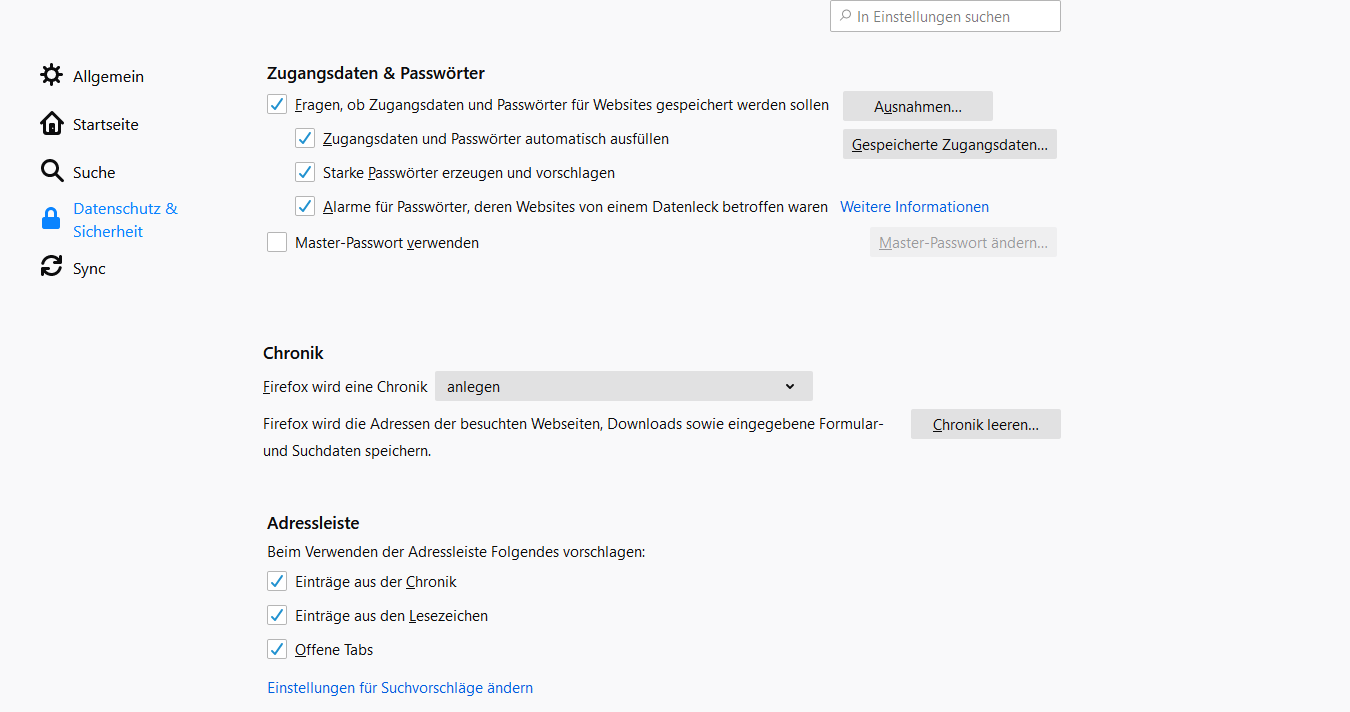 was meint ihr genau mit 'keine Chronik anlegen'? Wenn ich auf Chronik klicke, werden mir die letzten Seiten korrekt angezeigt.
