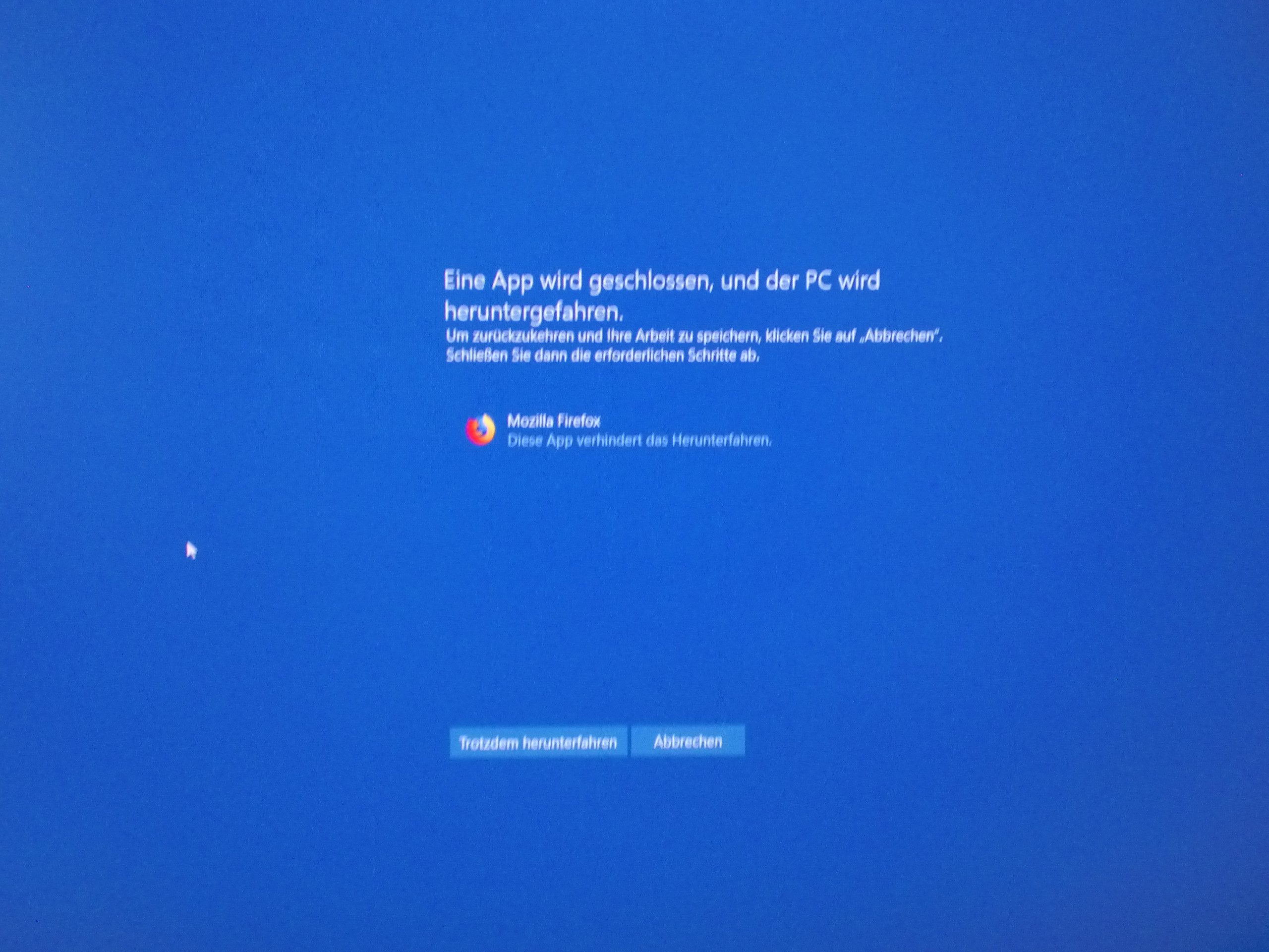Ich kann dann auf Abbrechen klicken, den FF schließen und dann Win10 wieder runterfahren.