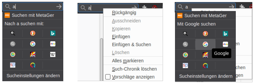 die Funktion des Änderns der Suchmaschine mit 1 Klick ist super, die Arbeitsweise hätte ich nur gerne anders, oder ich finde die passende Einstellung nicht.