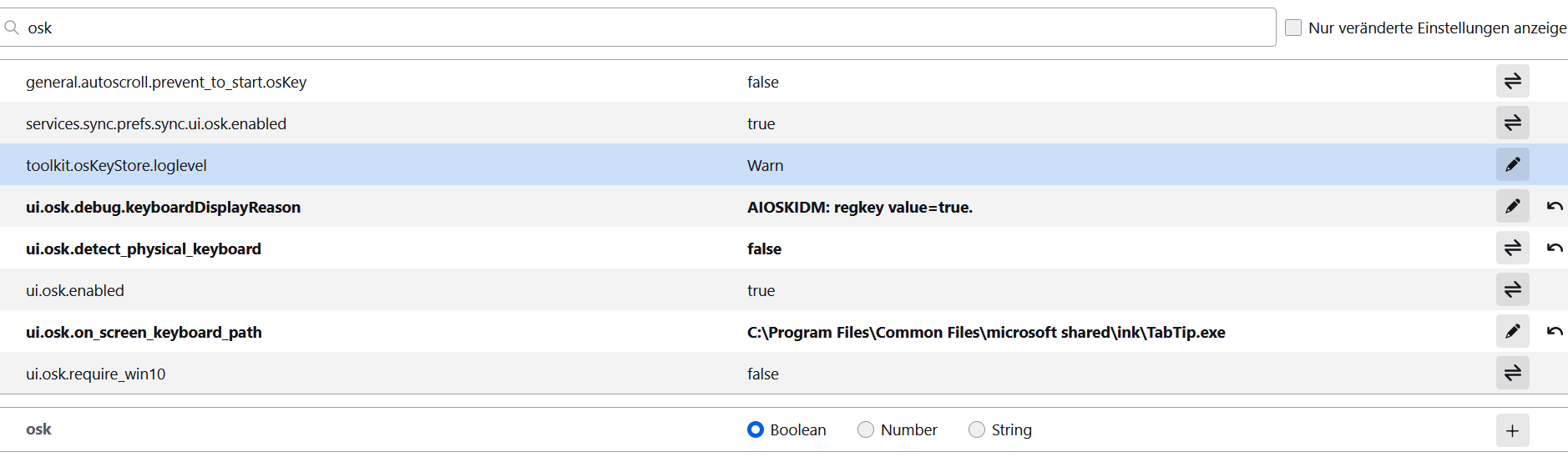 Andere Schritte gibt es nicht. Ich starte den Browser, fokusiere die Adressleiste, und dann müsste die Tastatur kommen. Die kommt aber nur kurz und verschwindet dann wieder.