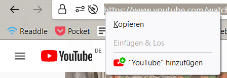 seit Firefox 89 kommt auf Seiten wie YouTube und Github ein zusätzlicher Eintrag im Kontextmenü, wenn man in die Adressleiste klickt, z.B. "YouTube" hinzufügen (siehe Screenshot). Wie kann man das deaktivieren?