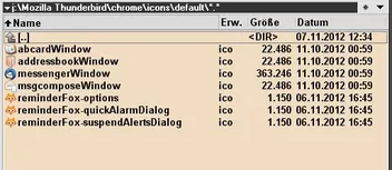 BTW: Wer Thunderbird nutzt kann auch dort entsprechende Icons hinterlegen, wobei es den Ordner Chrome :arrow: icons :arrow: default bereits gibt, in dem schon Icons hinterlegt sind... ich habe nun die ReminderFox Icons hinzugefügt...