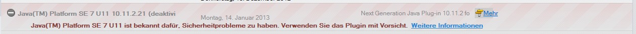 Eine sauber Neuinstallation unter Firefox 18.0.1brachte keine Abhilfe.